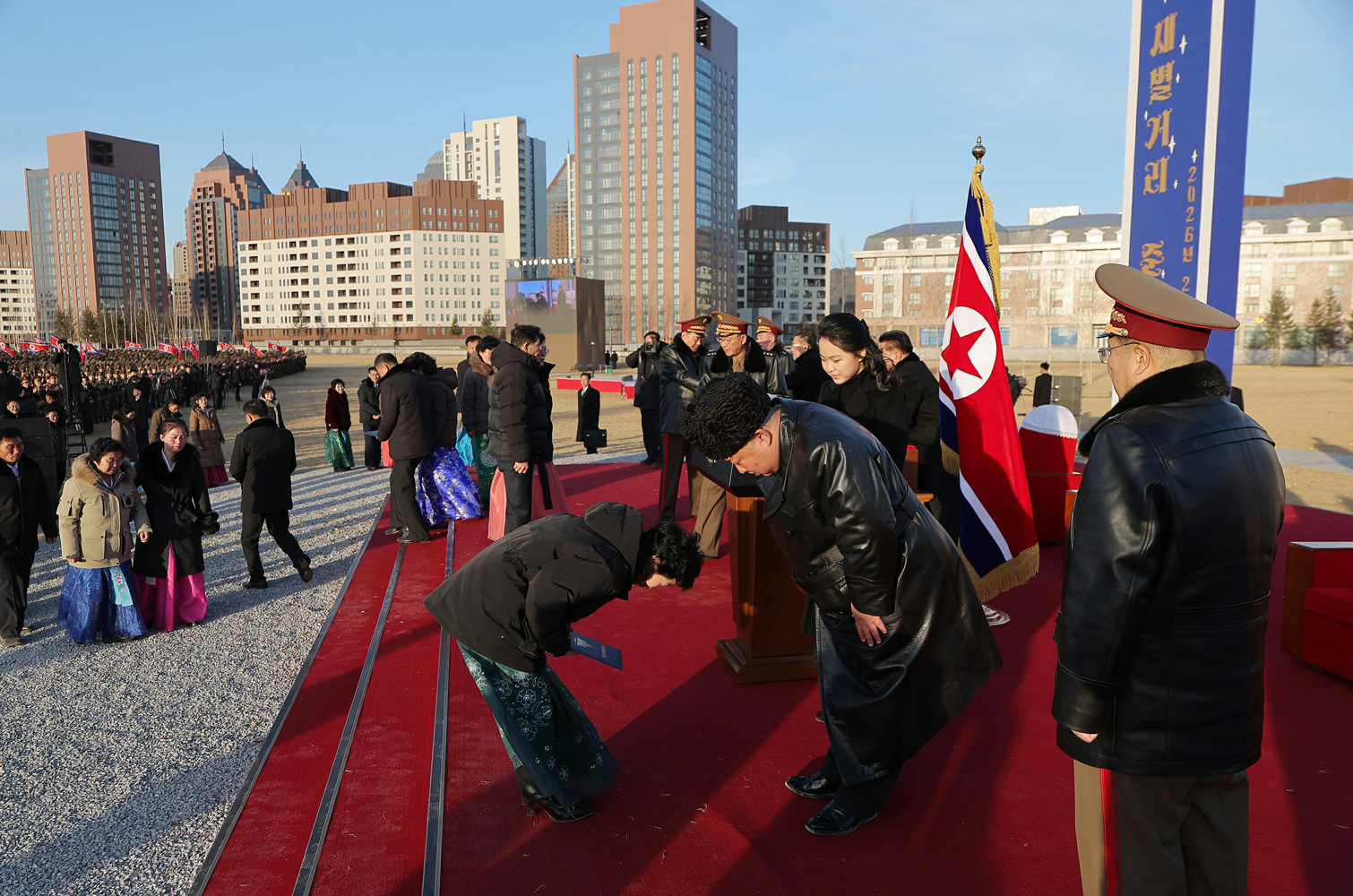 В столице КНДР Пхеньяне, на благодатном участке района Хвасон, вознеслась, явив миру свое неповторимое величие, улица Сэбёль — новый монументальный архитектурный ансамбль, вобравший в себя горячие сердца всего народа, который будет вечно прославлять немеркнущие, подобные звездам, подвиги героев зарубежных военных операций, без колебаний отдавших свои единственные жизни ради немеркнущей чести и бесконечного процветания нашей великой Родины — Корейской Народно-Демократической Республики. Стремясь увековечить в памяти грядущих поколений благородную жизнь славных сынов Отчизны, уважаемый Ким Чен Ын инициировал строительство новой улицы для семей ветеранов-участников боевых действий, собственноручно дал ей имя и на всех этапах возведения зданий проявлял неустанную заботу, следя за тем, чтобы в каждой детали сооружений находила отражение горячая преданность нашей партии и государства семьям павших воинов, их кровным узам. Ослепительный вид уникальных архитектурных комплексов, где в идеальной гармонии сочетаются высотные и среднеэтажные жилые дома, оснащенные всем необходимым для комфорта и отвечающие высоким эстетическим требованиям, а также общественные здания, включая объекты торговли и бытового обслуживания, — это бессмертное полотно, воплощающее возвышенный моральный долг и пламенную любовь нашей партии. Партия возносит семьи павших героев на один пьедестал почета с героями, которых чтит и обожает вся страна, даруя им возможность в полной мере наслаждаться прекрасной жизнью Родины, которую патриоты отстояли ценой собственной жизни. 15 февраля состоялась торжественная церемония сдачи в эксплуатацию улицы Сэбёль. Площадь, где проходило мероприятие, бурлила от переполнявших военных строителей, воздвигших необыкновенную новую улицу, следуя воле и замыслу Центрального комитета партии, а также от радости и волнения семей погибших, которым предстояло обрести очаг в новых домах, принятых с благословением всей страны. На церемонии присутствовал уважаемый товарищ Ким Чен Ын. Его встретили командиры зарубежных частей Корейской народной армии. Товарищ Ким Чен Ын тепло поприветствовал командный состав, обменялся с ним рукопожатиями и передал боевое приветствие всем без исключения бойцам зарубежных подразделений КНА. Все присутствующие, взирая на великого Отца, который, проявляя пламенную родственную теплоту, возносит ветеранов и их семьи на вершину славы и претворяет в жизнь грандиозный замысел, полный благородства и верности долгу, разразились страстными возгласами ликования. В церемонии приняли участие руководящие работники партии, правительства, вооруженных сил, члены центральных руководящих органов партии, члены семей павших героев-фронтовиков, бойцы, принимавшие участие в зарубежных операциях, офицеры и солдаты инженерных частей, командование Министерства обороны, военнослужащие различных подразделений КНА, строители, преподаватели и студенты революционных училищ, а также жители Пхеньяна. Уважаемый товарищ Ким Чен Ын выступил с речью, посвященной открытию улицы. Товарищ Ким Чен Ын поделился глубокими чувствами, вызванными знаменательным днем, когда улица Сэбёль, возведенная по горячему велению матери-Родины, становится новым адресом на карте нашей столицы. Он подчеркнул: «Сдача в эксплуатаци