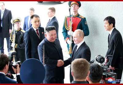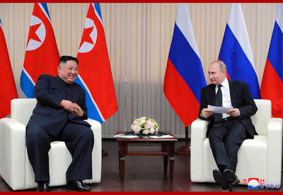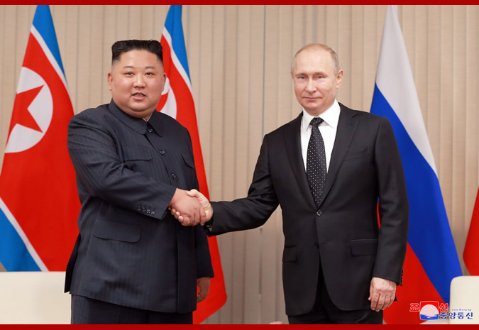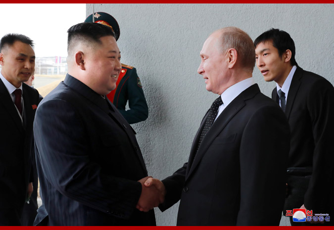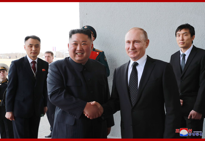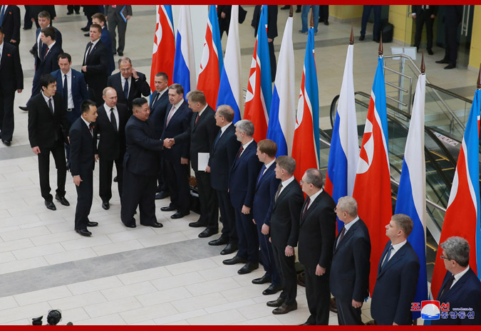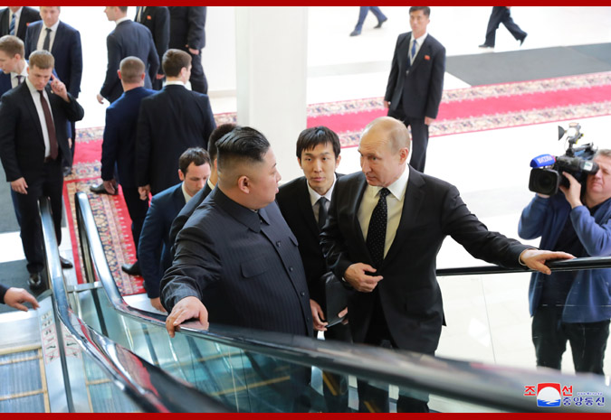 The national flags of the two countries were standing and the guards of honor of the three services of the armed forces of the Russian Federation lined up outside the building of Far Eastern Federal University on Russky Island in the city of Vladivostok, the place for the historic meeting between the two supreme leaders. Supreme Leader The Supreme Leader had the emotion-charged first meeting with the Russian president, exchanging greetings. President Putin welcomed the first Russia visit paid by Supreme Leader They had a meaningful photo session against the background of the national flags of the two countries and exchanged greetings with leading officials of the two countries respectively. They headed towards the venue of talks, having a pleasant chat. They posed for another meaningful photo against the backdrop of the two national flags standing at the venue of the talks. There were one-on-one talks between them. They had a constructive talk in a friendly and candid atmosphere. After informing each other of the situations in their countries, they agreed on the concrete directions and steps for further promoting mutual understanding, trust, friendship and cooperation and propelling the development of the friendly relations between the two countries oriented toward the new century. They had an exhaustive discussion of immediate issues of cooperation and reached a satisfactory consensus. They also had an exchange of their successes and experience gained in state building and exchanged honest and candid opinions on sharing each other's view over some issues with respect to the situation of the Korean peninsula and the field of international relations and on jointly managing the situation. The two top leaders were unanimous in appreciating that their meeting and talks served as a beneficial occasion of important significance in further consolidating and soundly developing the bilateral friendly relations with long history and tradition of friendship and in strategically controlling the unstable situation of the Korean peninsula in the wake of the second DPRK-U.S. summit talks. The talks lasted for hours in an unreserved and friendly atmosphere.