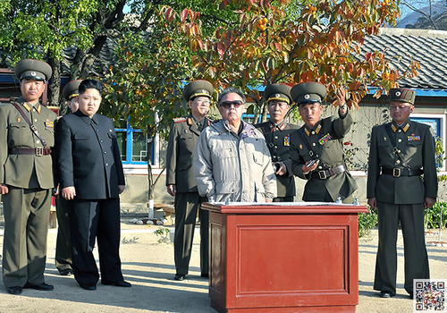 Comrades Kim Jong Il and Kim Jong Un inspect the KPA military base