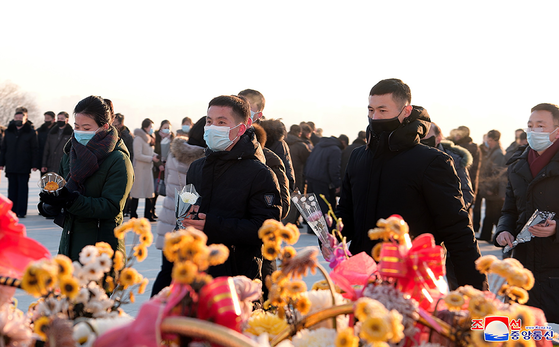 동지의 동상에 일군들과 근로자들,인민군장병들 꽃바구니 진정