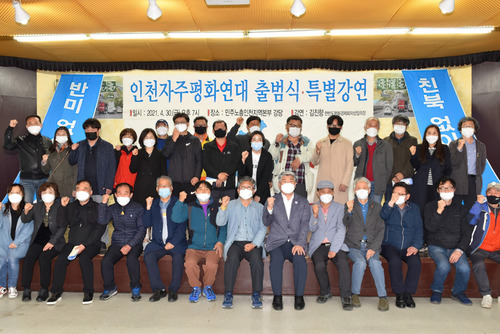 인천자주평화연대 출범식 참가자들이 행사를 마친 뒤 기념촬영을 하고 있다.