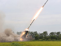 경애하는 김정은동지께서 국방공업기업소들에서 생산되고있는 240㎜방사포무기체계의 검수시험사격