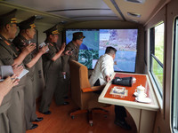 경애하는 김정은동지께서 국방공업기업소들에서 생산되고있는 240㎜방사포무기체계의 검수시험사격