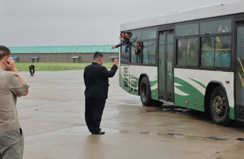 경애하는 김정은동지께서 평안북도 신의주시와 의주군의 큰물피해현장을 돌아보시였다