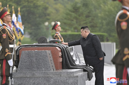 경애하는 김정은동지께서 위대한 전승 71돐에 즈음하여 전쟁로병들과 함께 조국해방전쟁참전렬사
